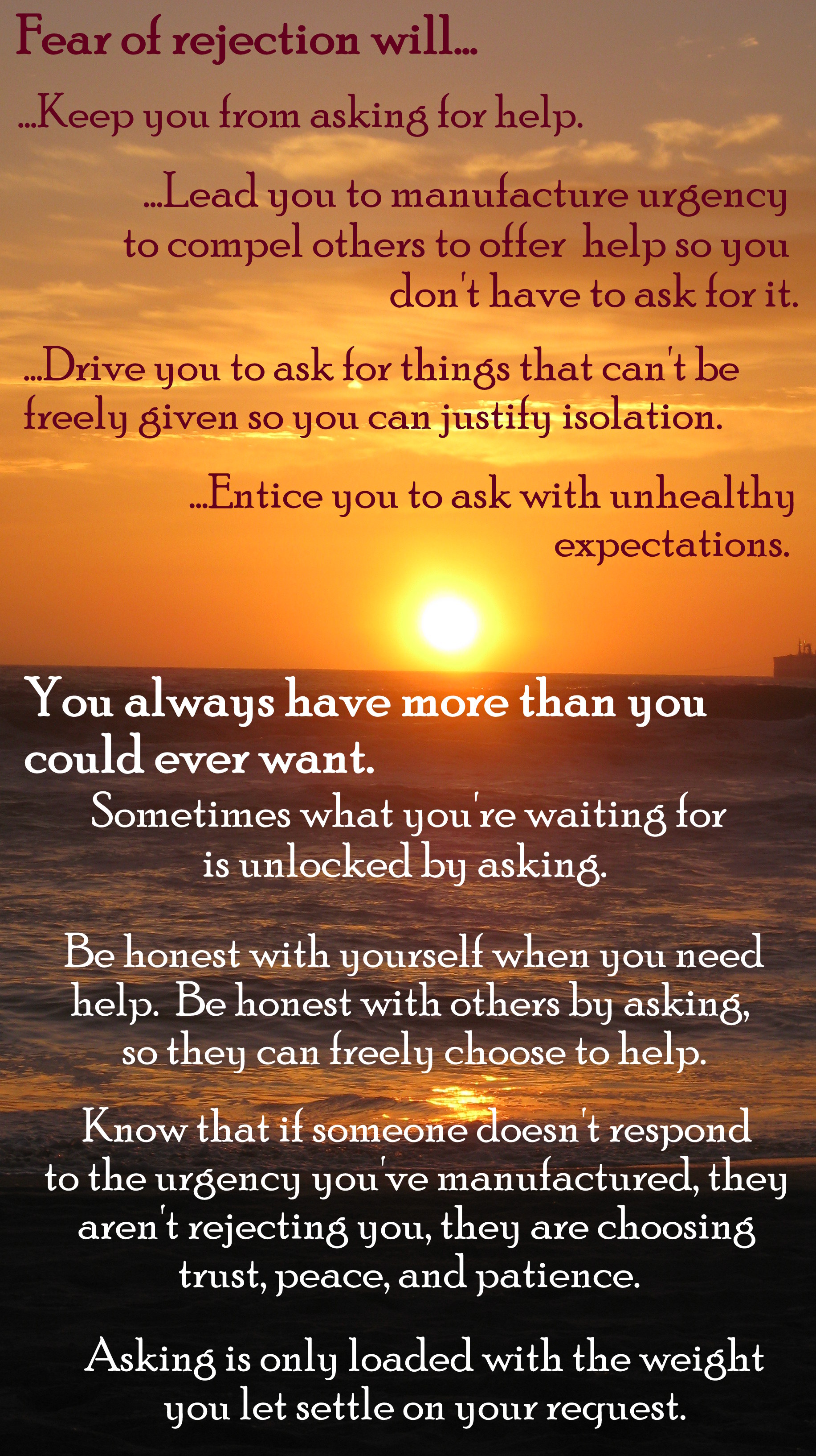 With a spirit of abundance, a request isn’t a desperate plea for help at any cost.